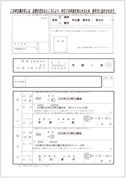なお、「遺産分割調停の申立」をする家庭裁判所は、相手方の住所地の最寄りの家庭裁判所に申し立てなくてはならないことになっています。兄弟姉妹のうち、一人が遺産分割案に反対しており、その人が遠方に住んでいる場合、近くに住んでいる分割案に賛成の一人を、反対している人とともに「相手方」にして、近くの家庭裁判所に調停申立をするということもあります。