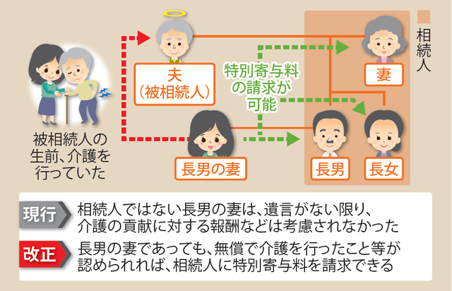 ◆介護を行った「長男の妻」などは、特別寄与料の請求が可能に