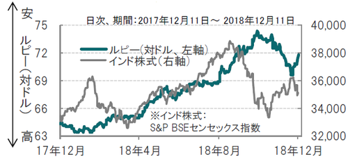 [図表1]インドルピー(対ドル)と株式市場の推移