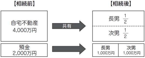 次男の言うとおり、法定相続分に基づいて財産を分けるとすると、長男は1000万円もらいすぎということになり、長男が次男に1000万円現金で渡すか、自宅不動産を共有名義で相続することになりますが、1000万円の現金は払えそうになく、佐藤さんの介護等で面倒を見てきた長男としては納得いかない気持ちが残ってしまいました。
