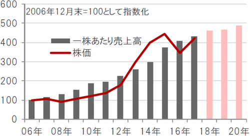過去の実績では、バイオ医薬品関連企業の株価は、売上高の伸びとともに上昇してきたことがわかります。(図表7参照)