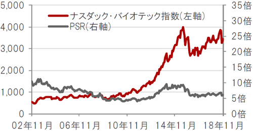 ※PSR:株価売上高倍率。2018年1月末時点のナスダック・バイオテック指数構成銘柄を基に算出
