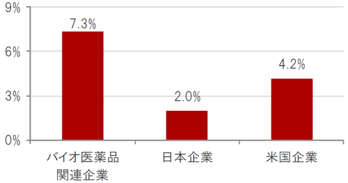 ※バイオ医薬品関連企業:ナスダック・バイオテック指数、日本企業:TOPIXの構成銘柄、米国企業:S&P500種株価指数