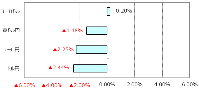 円は対米ドルでは、世界景気の減速懸念や米長期金利の低下などを受けて、円買い米ドル売りが優勢となり、同期間に2.44%上昇しました。円は対ユーロでも2.25%上昇しました。