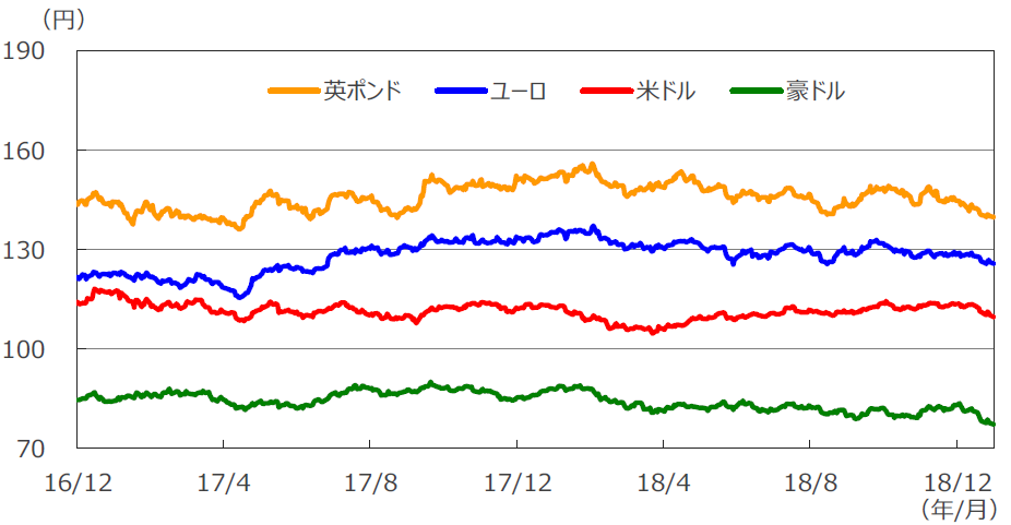 豪ドルの対円相場は、豪州景気が堅調さを増すと見られることや、先行きは豪日間の金利差が広がると予想されること等を踏まえると、底堅い推移が見込まれます。米中貿易摩擦が豪ドルに及ぼす影響は限定的と考えていますが、当面は不確実要因として警戒する必要がありそうです。