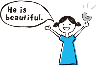 かわいがっている動物は、まるで「人」のように扱われます。気持ちの上で「人」のように感じているものであれば、動物であってもheやsheを使います。クイズでは、小鳥の性別までは分からないので想像するしかありませんが、仮に飼っている鳥が「オス」なら、He is beautiful, right? となります。動物以外でも、例えばmotorcycle(バイク)やship(船)などは、sheを使うことでまるで自分の彼女であるかのように話すこともあります。