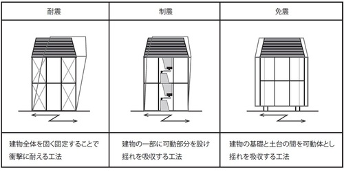 後ほど説明しますが、建築基準法に定められている耐震性を実現するために、これまでさまざまな構造が生み出されてきました。現在、主流になっている構造は3種類あります。