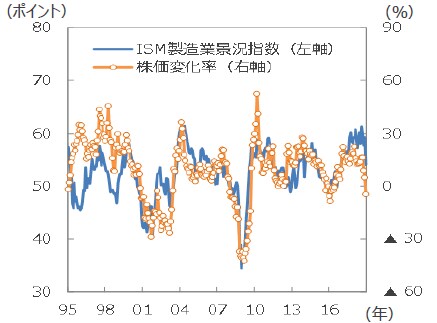 【ISM製造業景況指数と株価変化率】