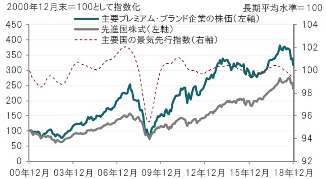 [図表3]景気先行指数とプレミアム・ブランド企業の株価推移