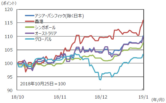 国・地域別のREIT指数の推移