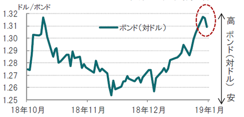 当初の離脱協定案が大差で否決された後、21日に表明されたメイ首相の代替案と、英国下院議会が提案した動議の採決結果を比べると、メイ首相の6勝1敗とも見られます。ただ、市場の反応を見るとポンドは小幅ながら下落しました(図表2参照)。市場は次の点を懸念していると見ています。