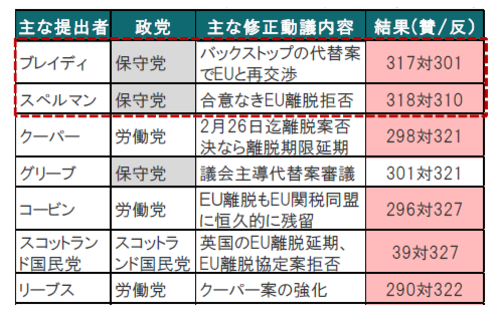 [図表1]英国下院における修正動議の採決結果(1月29日)
