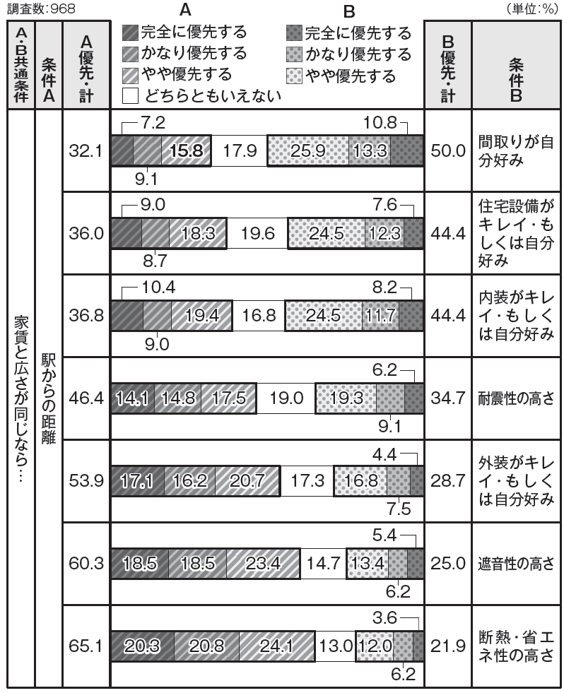 ●「駅からの距離」よりも、「間取り」「設備」「内装」を優先する