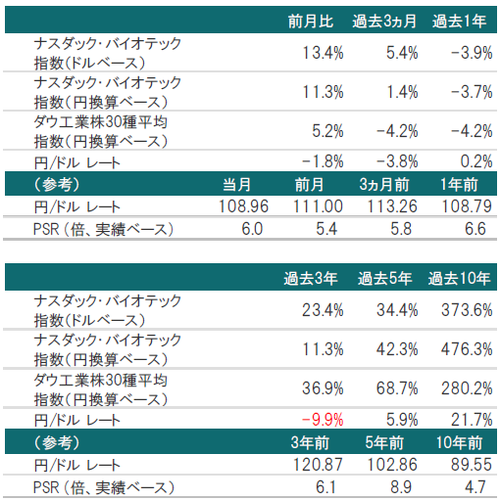 1月のナスダック・バイオテック指数(ドルベース、配当含まず)は上昇しました。