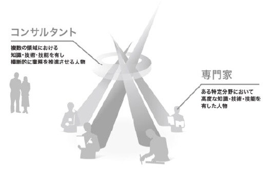 皆さんは、コンサルタントと専門家の違いをご存知でしょうか。コンサルタントとは、「複数の領域における知識・技術・技能を有し、横断的に業務を推進させる人物」のことを言います。