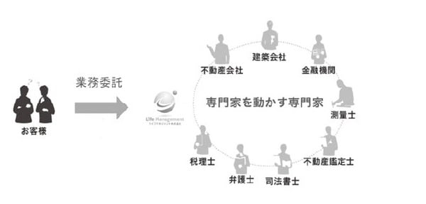 当社の強みは、税理士・司法書士・不動産鑑定士・弁護士・不動産会社・建築会社・金融機関等の各専門家を取りまとめ、プロジェクトごとにチームを組み、実行、支援を行うワンストップ体制です。
