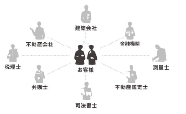 不動産鑑定士、税理士、司法書士、住宅メーカー。