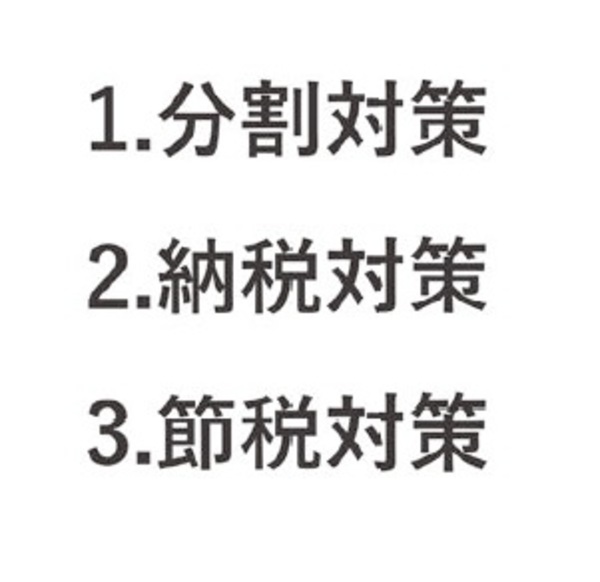 地主の皆さんにとって一番の大きな悩みは、相続の問題ではないでしょうか。一般的に相続対策には、「分割対策」「納税対策」「節税対策」の3つの対策が必要だと言われているのですが、私はこの中に隠れている、あるもうひとつの重要な対策に着目しました。