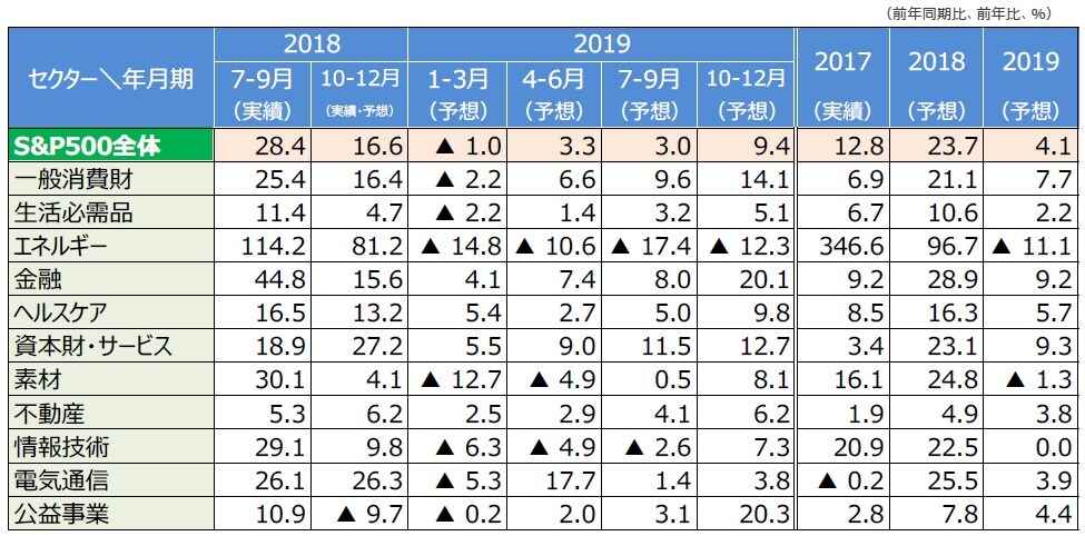 ■米企業の業績が急減速しています。調査会社リフィニティブによれば、9割超の企業が決算発表を終えた2月27日時点で、S&P500種株価指数に採用された企業の2018年10-12月期の純利益は前年同期比+16.6%となり、7-9月期の同+28.4%から大幅に伸びが鈍化しました。