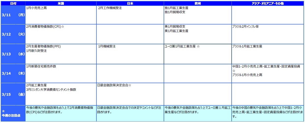三井住友アセットマネジメント株式会社が、2019年3月4日~3月8日のマーケットについて振り返り、「1. 先週の市場動向、2. 先週のアジア・オセアニア株式・リート市場、3. 先週のマーケット・デイリー/ウィークリー、4. 今週の主な注目材料」のそれぞれについて解説します。今回は、「4. 今週の主な注目材料」を見ていきましょう。※本連載は、三井住友アセットマネジメント株式会社が提供するマーケットレポートを転載したものです。