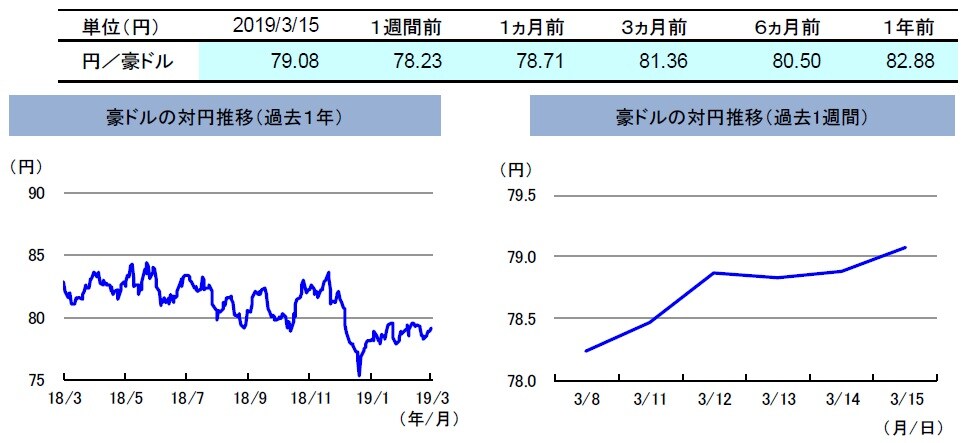 先週の豪ドルの対円レートは、上昇しました。先週は、週後半にかけて鉄鉱石等資源価格が上昇したことや、米中通商協議の進展期待などから、豪ドルの対円レートは上昇しました。
