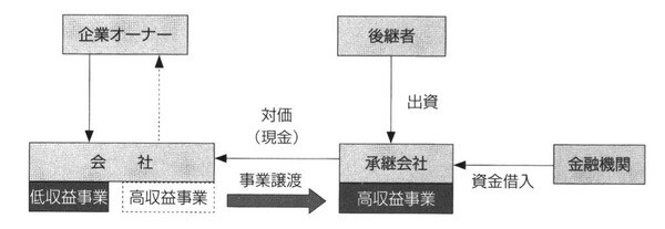 たとえば、高収益部門を分社化して子会社を設立し、その株式を後継者に売却する方法が考えられます。この場合は株式売却だけでなく、後継者が設立する新会社を受け皿として、高収益部門を事業譲渡することもできるでしょう。事業譲渡の代わりに現金交付型会社分割を使って事業を移転しても同様です。
