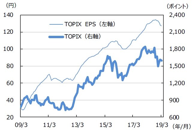 (注)データは2009年3月~2019年3月。EPSはリフィニティブI/B/E/Sによる予想ベース。