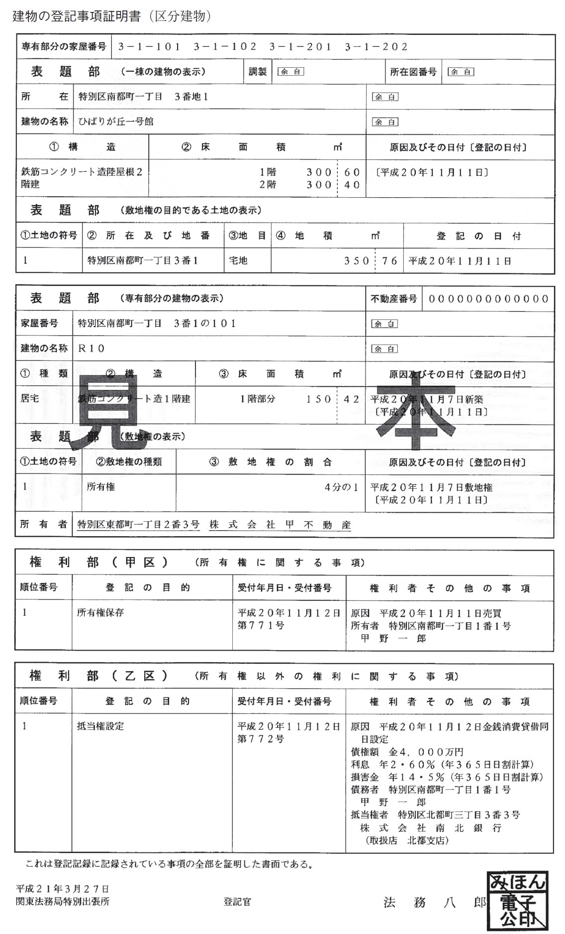 「区分建物全部事項証明書」の見本で解説