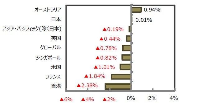 グローバル・リートは、世界的な株安を嫌気して、0.78%下落しました。