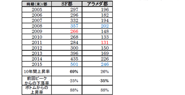 ※参考数値:サンフランシスコのアパート 当たり売買単価(単位:千ドル)