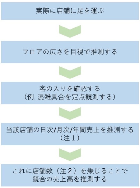 (注1)一人当たり客単価は便宜的に自社のものを代用しても良いし、目視でおよその水準を推測しても可。