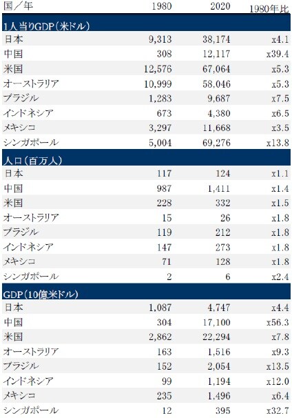 ![[図表2]各国の1人当たりGDPと人口の推移 (1980年、2020年、2020年はIMFによる予想)](https://ggo.ismcdn.jp/mwimgs/4/e/500/img_4e287b2f45bfef94c39a4be7f591c03f83210.jpg)