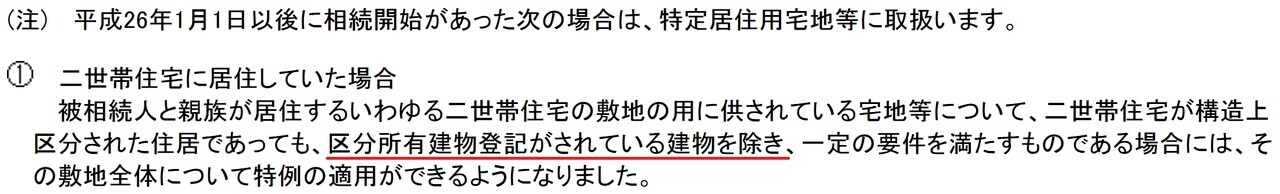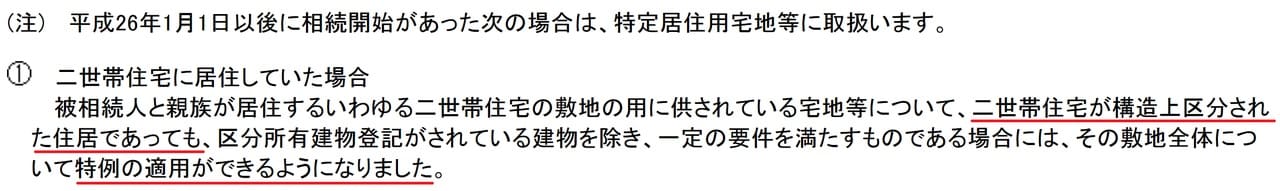 「二世帯住宅が構造上区分された住居であっても、特例が適用できるようになりました」と、改正されたため、家のなかで行き来できない二世帯住宅に住んでいる方でも、小規模宅地等の特例が受けられるようになりました。もう床も壁も壊さなくてOKです。
