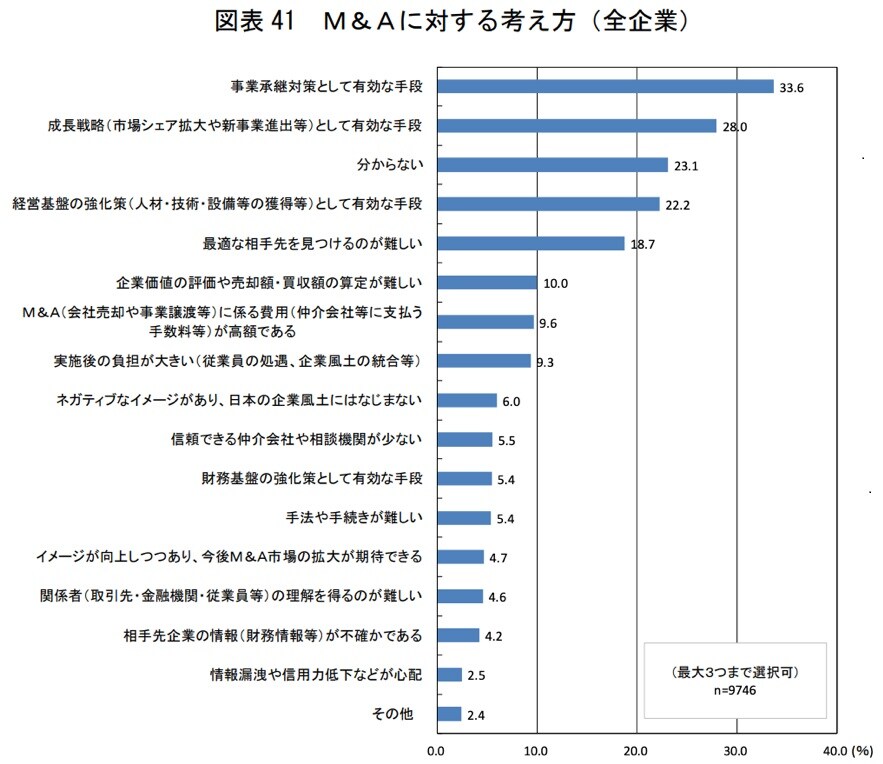 2019年2月19日、衆議院調査局経済産業調査室が全国2万社を対象とした、「最近の企業動向等に関する実態調査」のデータによると、事業承継においてM&Aに対して前向きな姿勢を見せいています。