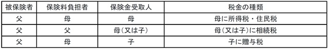 死亡保険金にかかる税金は、「被保険者」「保険料負担者」「保険金受取人」が誰であるかにより、所得税、相続税、贈与税のいずれかの対象となります。