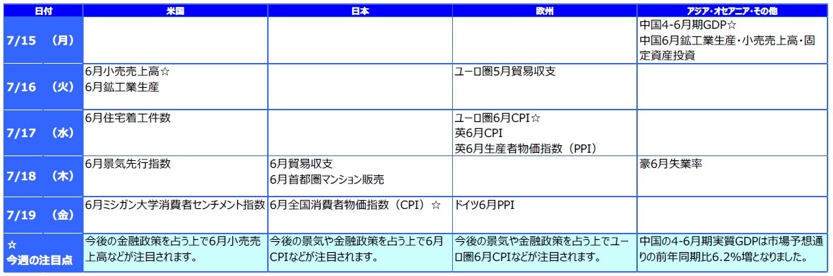 三井住友DSアセットマネジメント株式会社が、2019年7月8日~7月12日のマーケットについて振り返り、「1. 先週の市場動向、2. 先週のアジア・オセアニア株式・リート市場、3. 先週のマーケット・デイリー/ウィークリー、4. 今週の主な注目材料」のそれぞれについて解説します。今回は、「4. 今週の主な注目材料」を見ていきましょう。※本連載は、三井住友DSアセットマネジメント株式会社が提供するマーケットレポートを転載したものです。