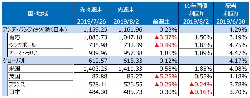 ※当レポートの閲覧に当たっては【ご注意】をご参照ください(見当たらない場合は関連記事『2019年7月29日~8月2日のマーケットの振り返り②先週のアジア・オセアニア株式・リート市場』を参照)。