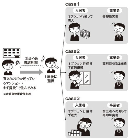 買主としては、その物件の住み心地、近隣関係、市場動向などを確認したうえで、購入するか、賃貸を継続するか、退去するかを決めることができます。米国では「リースオプション」という名称で導入されているものですが、日本ではユニークなサービスとなります。売手はこのサービスをフックに、マンション販売チャネルの増加と、高めの価格設定での売却を実現します。