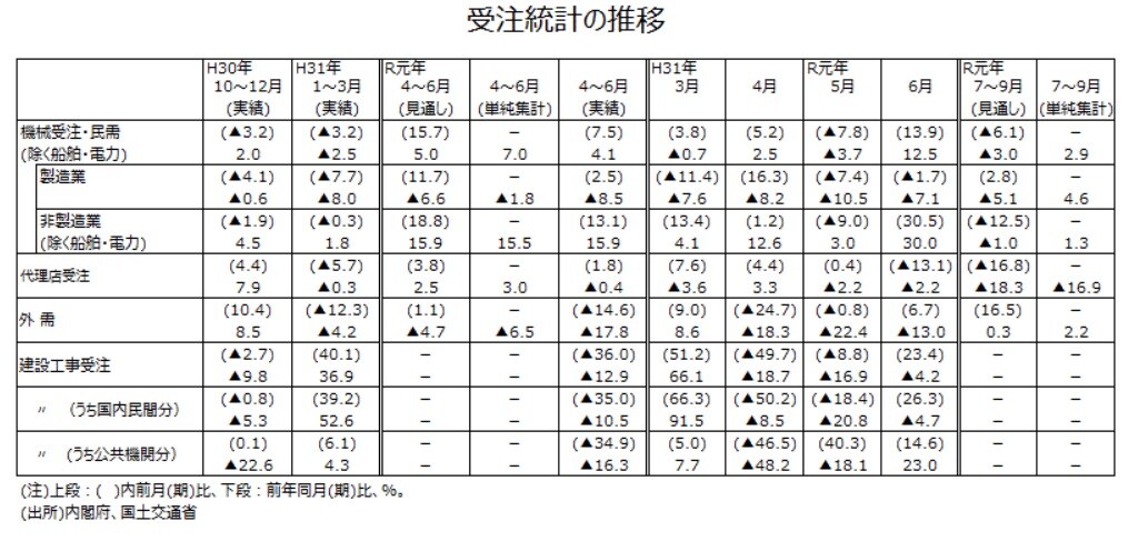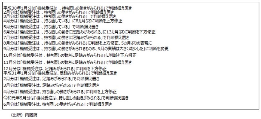 ※当レポートの閲覧に当たっては【ご注意】をご参照ください(見当たらない場合は関連記事『2019年6月分機械受注』を参照)。