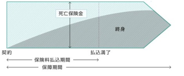 終身保険は保険期間が一生続き、何歳で亡くなっても保険金が支払われるという保険である。契約すれば必ず保険金が支払われることになるため、当然ながら掛捨ての定期保険と比べると保険料は高くなる。