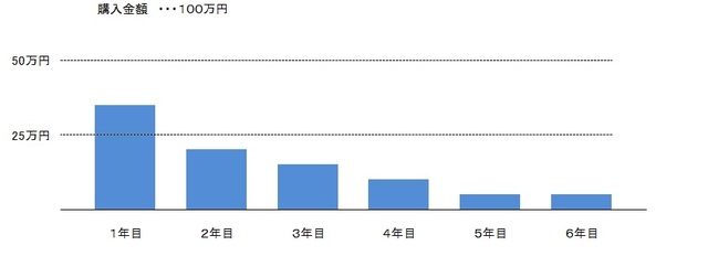 はじめの年ほど償却額は大きくなり、経過年数に伴って減少していきます。