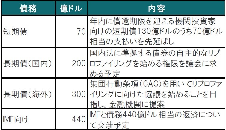 短期債のうち15%分は満期日に償還、25%は満期から3ヵ月遅れ、残りの6割は半年後に支払うとしています。また利払いは続け、債務減免(ヘアカット)も予定していないことから、支払期日の調整とアルゼンチンは強調しています。