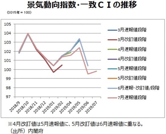 ※当レポートの閲覧に当たっては【ご注意】をご参照ください(見当たらない場合は関連記事『2019年7月分景気動向指数(速報値)』を参照)。