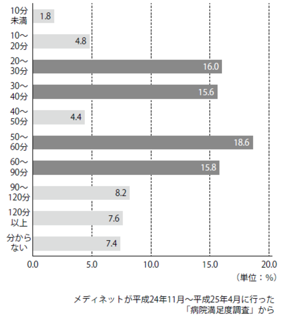 ご覧のように、この調査では、外来患者が診察待ち時間、会計待ち時間に対して強い不満をもっていることが明らかになっていますが、おそらく、動物病院に関して同様のアンケートを行ったとしても、同じような結果になるはずです。