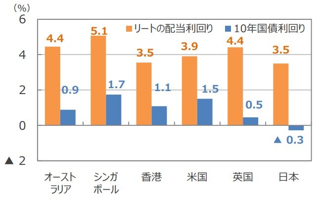 ■リートの配当利回りと長期金利の利回り格差は2~3%程度となるなど、リートの利回りは魅力的な水準となっています。