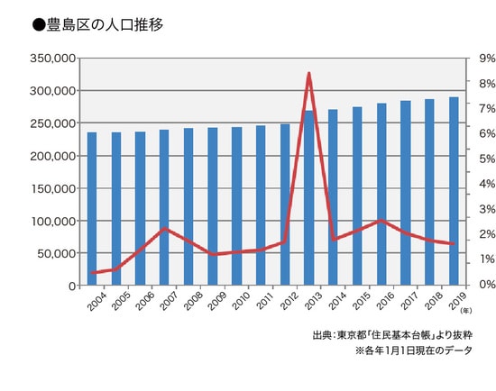 ◆借家数(供給)、人口(需要)ともに伸びる豊島区