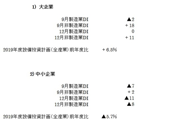 ※当レポートの閲覧に当たっては【ご注意】をご参照ください(見当たらない場合は関連記事『2019年9月調査 日銀短観 予測』を参照)。