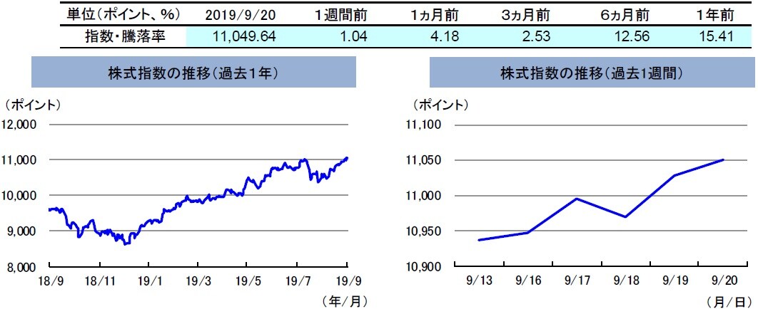 先週の豪州株式は、上昇しました。先週は、公表された9月の金融政策決定会合議事録でRBAが追加利下げを排除しない姿勢が示されたなか、8月の雇用統計を受けて10月の追加利下げ観測が強まったことなどが好感され、豪州株式は上昇しました。