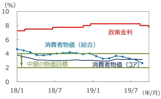 ■今後の金融政策については、低迷する国内経済を支える必要があることに加え、メキシコ銀行はこれまで米国の金融政策を踏まえて政策金利を決定してきたことから、米国の金融緩和の状況次第では、更なる利下げを行うことが見込まれます。
