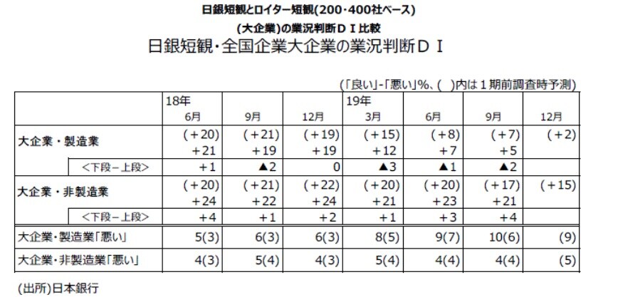 ※当レポートの閲覧に当たっては【ご注意】をご参照ください(見当たらない場合は関連記事『2019年9月調査 日銀短観』を参照)。